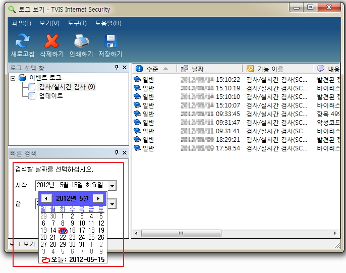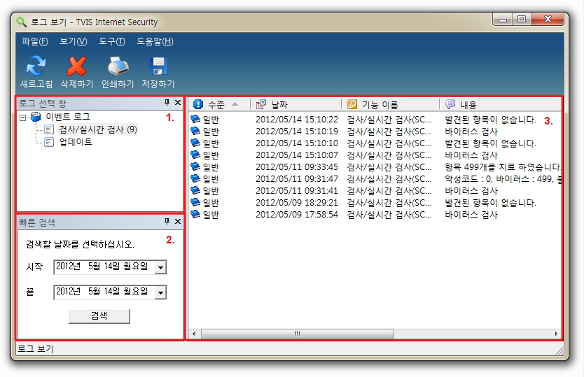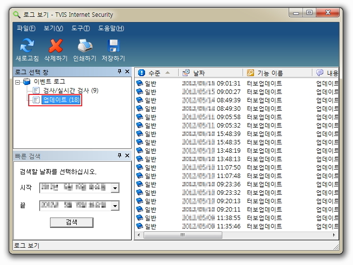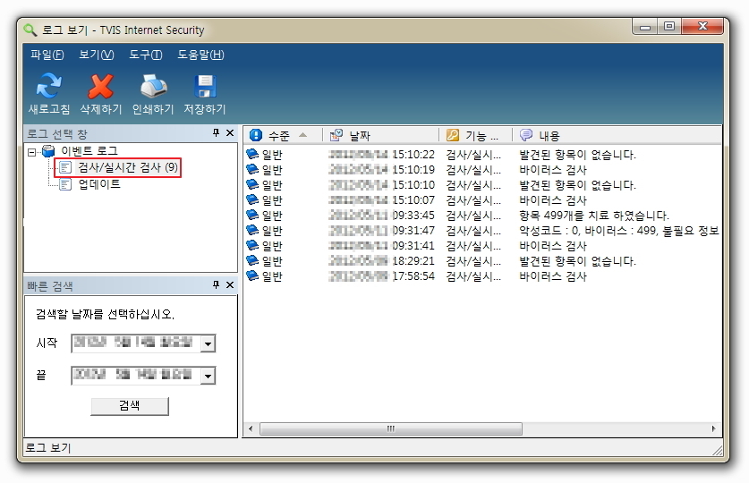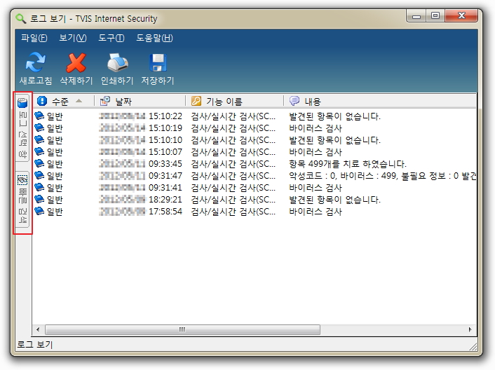 TurboVaccine Internet Security는 다양한 형태의 강력한 로그 보기 기능을 통해 PC의 상태를 점검, 분석 할 수 있습니다.
