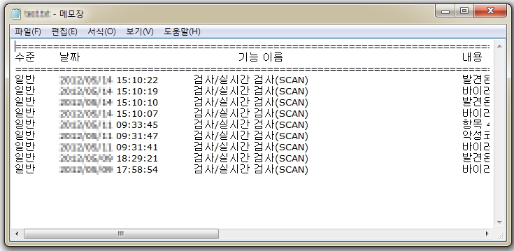 ( 예 ) 바이러스 검사, 악성코드검사, 부트 섹터 검사에 대한 이벤트 로그