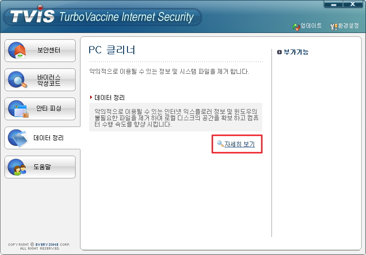 데이터 정리(PC 클리너) 화면 / 기능 안내