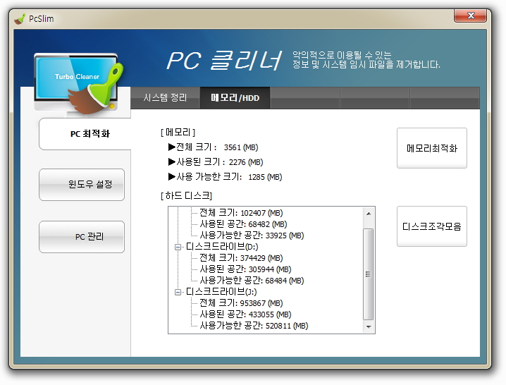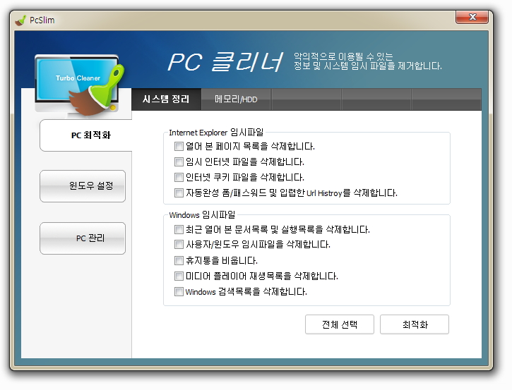 원하는 항목을 선택하신 다음 [최적화] 버튼을 누르시면, 최적화가 진행됩니다.