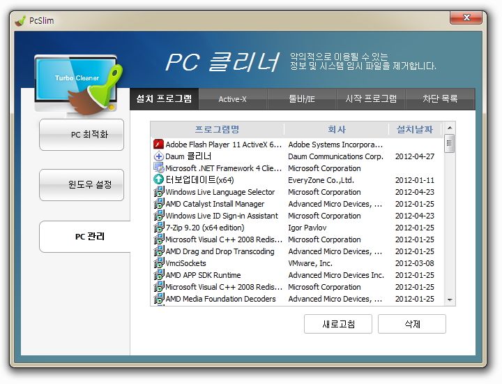 현재 PC에 설치 되어 있는 프로그램의 목록을 보여줍니다.