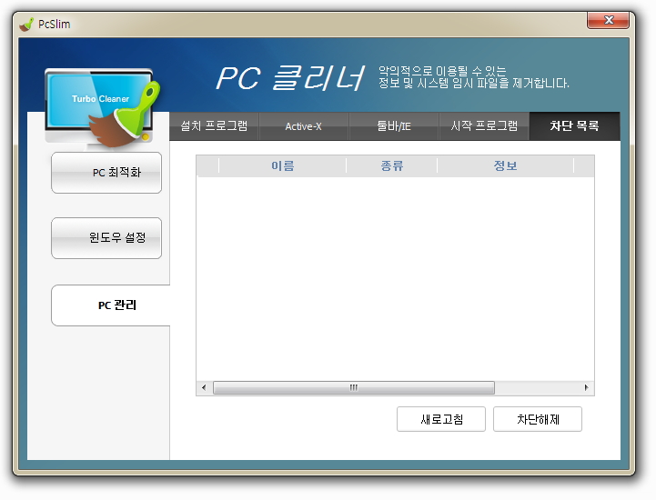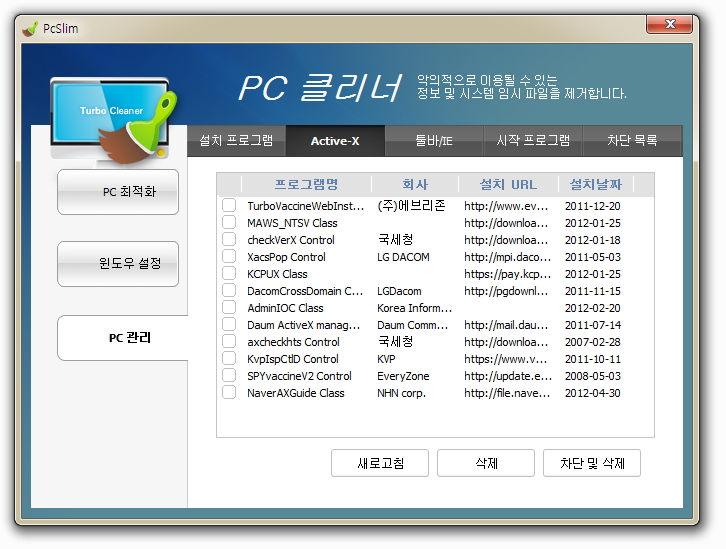 현재 PC에 설치되어 있는 Active-X의 정보를 표시합니다.