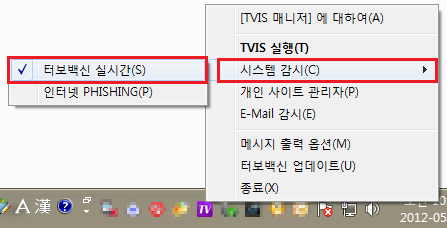 바이러스 실시간 감시기는 PC를 사용하면서 파일을 열거나 저장 혹은 다운로드 하는 동안 보이지 않는 형태로 바이러스를 감시하는 시스템 입니다.