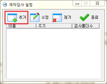 - “예약검사 설정” 화면에서 [추가] 버튼을 클릭합니다.