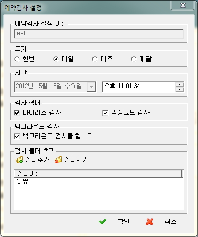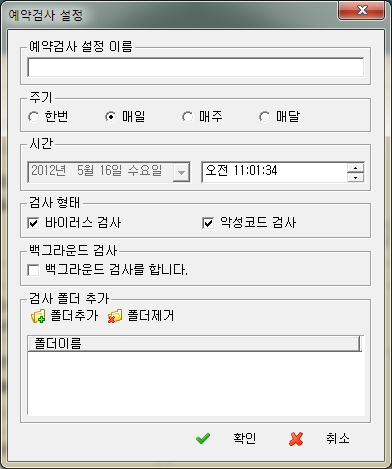 예약 검사를 설정 할 수 있는 창이 출력됩니다.