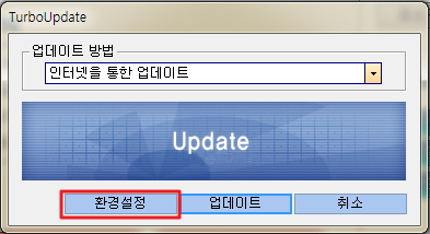 - 업데이트 화면에서 [환경설정] 버튼을 클릭합니다.