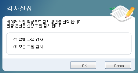 모든 파일 검사 : 바이러스/악성코드 검사 시, 모든 파일을 검사합니다.