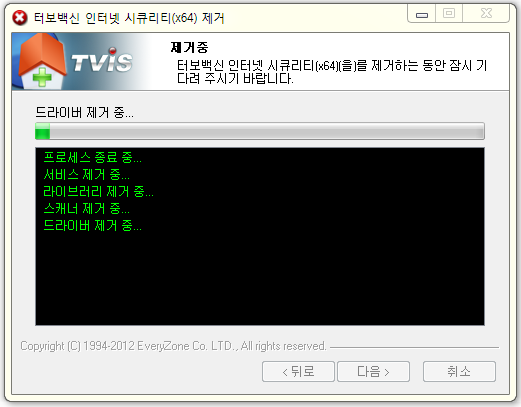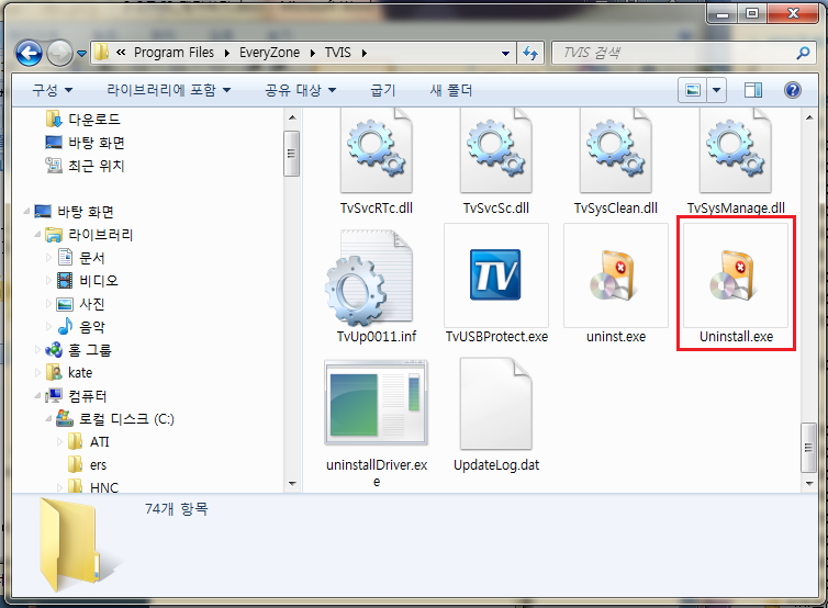 참고 위 사항이 목록에 없을 시, "C:\Program Files\EveryZone\TVIS\Uninstall.exe" 을 실행하여 주시기 바랍니다.